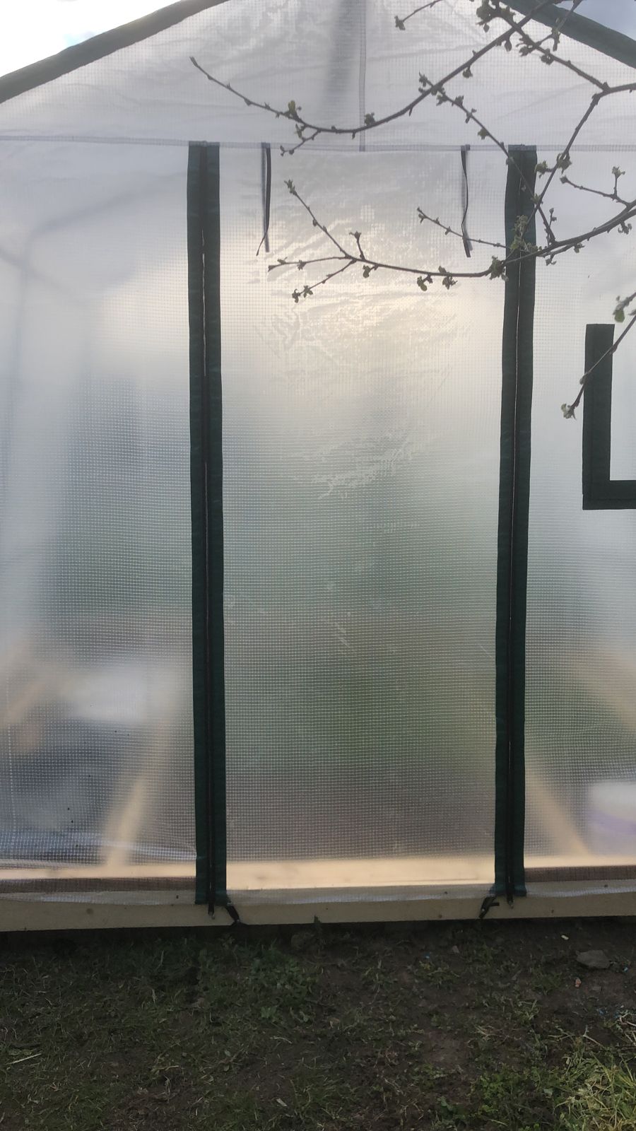 У всех теплиц теперь 2 двери на молнии и 2 форточки на липучке. А также боковое проветривание на молнии с подвязками.
